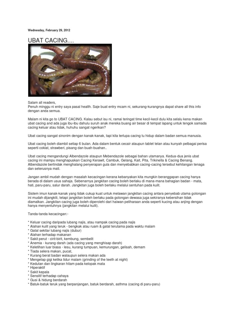 Bilakah kali terakhir anda makan ubat cacing. Ubat Cacing di Pasaran.
